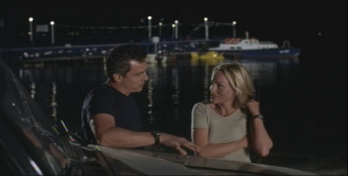 It's before the love scene between Barrowman and McShane that the famous line happens, in that shot above. "I'm really wired... what do you say I take you home and eat your pussy?" And with that cinematic history--forget DTV history, cinematic history--was made. It has all the makings of a great movie line: out of nowhere and unexpected, something off about it, and something you never hear people say in movies ever. Beyond that you have Barrowman, someone whose talent is already outclassing the material and elevating this to something beyond simply a shark attack movie, delivering the line as perfectly as you'd need; and Jenny McShane has pretty much no reaction, after which we immediately cut to the standard lovemaking scene.